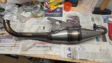 vendo solo l'espansione in foto di uno scarico dig racing. la staffa è integrata, manca il silenziatore, manca il collettore scomponibile. guardando altre foto sul web penso che l'applicazione sia piaggio, ma se volete fare taglia e cuci si può adattare da altre parti.