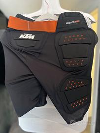 Vendo pantaloncini elasticizzati KTM Ready to Race con protezioni laterali, da indossare sotto i pantaloni, ideali per motocross ed enduro.