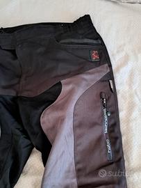 Pantalone inverno estate, regolabile. Molto caldo d'inverno ma sfoderabile. Con protezioni al ginocchio amovibili. Taglia 46 ma veste anche XL. Sistema antipioggia watertech e strisce visibilità dietro i polpacci. Cerniere alle caviglie per regalarlo allo stivale. Doppia tasca e piccola cerniera posteriore lombare per attaccarlo alla giacca. Molto protettivo ma leggero. Materiale alta tecnologia. Come nuovo, mai usato. lo vendo perché a me veste largo. Disponibile anche altro pantalone taglia L nelle ultime foto