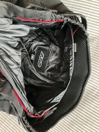 - Apertura anteriore con zip, bottone, gancio e costruzione impermeabile.