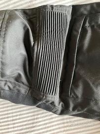 - Pantalone esterno armaturato con rinforzi in pelle su interno gamba e antiscivolo su fondo schiena