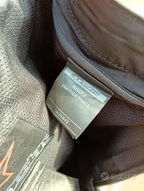Pantaloni Alpinestars Missile in ottime condizioni, usati pochissimo Sempre curati con prodotti adatti, nessun segno di secchezza della pelle Cerniere perfette e scorrevoli Predisposto per attaccarsi ad un'eventuale giacca tramite cerniera