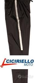 Pantaloni impermeabili, estremità delle gambe con sistema di bottoni e cerniera, strisce riflettenti sui lati, fascia elastica regolabile in vita, cuciture saldate, traspirante. Materiale 100% nylon