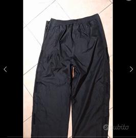 pantaloni anti pioggia, tessuto pesante e fodera interna, apribile con zip su tutta la lunghezza gamba, XXL, ho applicato con nastro americano inserti morbidi su ginocchia e anche.