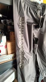 Pantaloni antipioggia RainLock. Si indossano sopra i pantaloni da moto per aggiungere loro uno strato impermeabile. Ideali contro il maltempo e il vento, i pantaloni si adattano a tutte le pratiche, sonomolto leggeri e molto salvaspazio, non limitano i tuoi movimenti. Progettati per accompagnare i tuoi outfit da motociclista, i pantaloni sono dotati di cerniere nella parte inferiore delle gambe per facilitare l'indossamento con gli stivali, nonché di cinturini in velcro ed elastici. Inoltre, poiché i pantaloni sono progettati per essere indossati sopra i pantaloni da moto, ti consigliamo di scegliere la stessa taglia di questi. Se ad esempio i tuoi pantaloni da moto sono di taglia S, allora prendi i pantaloni antipioggia RainLock anche di taglia S. Pantaloni, progettati per il motociclismo, sono dotati ditessuto antiscivolonella parte posteriore per non scivolare sulla sella e all'interno dei polpacci. Il cavallo è realizzato in un tessuto non sensibile al calore per non creare disagio. Un giocatore per la tua sicurezza, i pantaloni antipioggia moto RainLock BMW sono dotati di diversielementi riflettentistrisce per aumentare la tua visibilità sulla strada. Informazioni aggiuntive: - Utilizzo: tutti gli usi - Stagione: tutte le stagioni - Genere: unisex - Composizione: 100% poliestere riciclato, rivestimento in poliuretano - Tessuto antiscivolo - Regolabile con elastici e cinturini in velcro