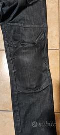 Pantaloni da moto usati poco, con protezioni alle ginocchia estraibili , tessuto rinforzato , colore jeans grigio scuro, taglia 48/50 .