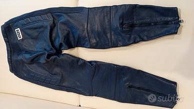 Pantaloni in pelle per moto da donna col. blu tg. 38 in ottime condizioni.