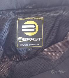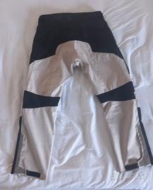 Pantaloni da Moto marca Befast tg XL, vestono 54/56, tessuto in cordura, interno in rete traspirante con tasche per inserire le protezioni sui fianchi, protezioni ginocchia gia inserite, regolazione larghezza vita con cinghia in velcro, chiusura in vita con bottoni, zip sulle caviglie e regolazione larghezza caviglie in velcro, zip posteriore per aggancio al giubbotto, 2 tasche laterali con zip, In perfetto stato non hanno rotture o danni.
