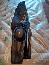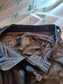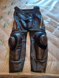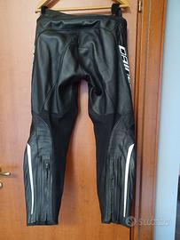 pantaloni in pelle Dainese TG.52 protezioni su fianchi e ginocchia, saponette, doppia cerniera su fondo gamba, cerniera per unione a giacca, usati una sola estate per ottimistica scelta taglia.