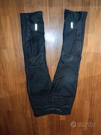 pantaloni tecnici da moto per donna marca Ixon, modello Amarissa, taglia L (vestibilità indicativa 44-46 italiana, fare riferimento alle misure in foto o sul sito del produttore). Questi pantaloni sono estremamente versatili grazie al sistema a 3 strati indipendenti: Pantaloni esterni: Realizzati in tessuto tecnico ultra-resistente con ampi pannelli in mesh per un'ottima ventilazione estiva ("COOL AIR PROCESS"). Colore nero con cuciture a contrasto grigie. Membrana impermeabile e antivento: Strato interno rimovibile grigio chiaro, ideale per le giornate di pioggia o vento. Fodera termica: Strato interno rimovibile trapuntato per garantire calore durante le uscite invernali. Sicurezza: Inclusi nel prezzo, sono presenti tutti i dispositivi di protezione: Protezioni omologate CE sulle ginocchia (inserite nelle apposite tasche). Protezioni omologate CE sui fianchi (inserite nelle apposite tasche). Caratteristiche aggiuntive: Regolazioni in vita con velcro e cinghie per una vestibilità personalizzata. Tasche esterne con cerniera davanti e con velcro sul retro Loghi e dettagli riflettenti per una maggiore visibilità notturna (visibili in foto con flash). Cerniera di connessione giacca-pantalone in vita. orlo regolabile con bottoni a pressione. I pantaloni sono in ottime condizioni generali, usati poco e ben tenuti. Non presentano strappi o segni d'usura evidenti. Tutti i componenti (cerniere, velcro, bottoni) sono perfettamente funzionanti. misure: vita 43 cm fianchi 53 cm altre foto a disposizione!