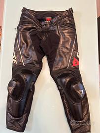 DAINESE originalepantalone pelle nero taglia 52 nessun segno usura ne’ deterioramento della pelle , saponette ginocchia intatte , mai “incidentate” univile con cerniera a tutte le giacche Dainese . Prezzo leggermente trattabile. Vendo per cambio taglia.