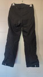 Causa cambio taglia, vendo pantaloni moto impermeabili taglia 54 (ma vestono poco) con protezioni fianchi e ginocchia. Indossati per un solo giro, non ho testato la tenuta con la pioggia. Giro vita 76 Fianchi 86 Giro coscia 56 Cavallo 124