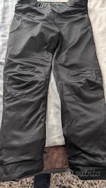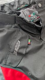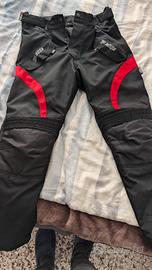 Vendo pantaloni tecnici da moto marca Biesse Racing, taglia M. Colore nero con dettagli rossi sportivi. I pantaloni sono molto versatili e sicuri, perfetti per il touring o l'uso cittadino. Tasche interne su ginocchia (come visibile in foto) predisposte per inserimento protezioni. Inserti a soffietto (elasticizzati) sopra le ginocchia e sulla parte posteriore per una migliore mobilità in sella. Vita regolabile con cinturini in velcro e chiusura doppio bottone/zip. Fondo gamba con velcro per calzarli facilmente sopra gli stivali. Fodera traforata traspirante (mesh) per un ottimo comfort termico. Doppie tasche anteriori con chiusura di sicurezza.