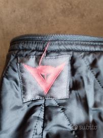 Pantaloni delle Dainese per moto con protezioni ginocchia e laterali, più imbottitura termica.
