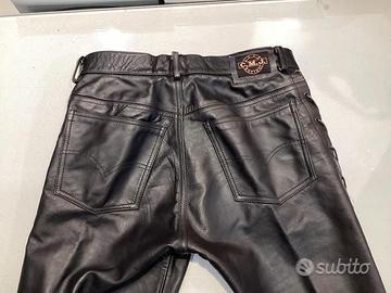 PANTALONI IN PELLE VINTAGE STILE CUSTOM DELLA CMJ CON LACCI LATERALI, TAGLIA 48, NUOVO