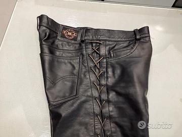 Pantaloni pelle moto custom cmj lacci laterali