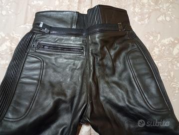 pantaloni in vera pelle, taglia 46, venduti per il solo motivo della taglia ormai piccola per me, tutte le cerniere sono in perfetto stato vestibilità ottima, perfetti per il moto touring, sono come nuovi.
