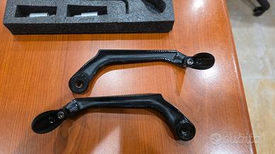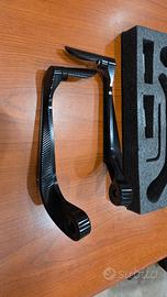 Coppia di paraleve per moto, indispensabili per prevenire l'azionamento indesiderato delle leve freno e frizione in caso di contatto con altri piloti in pista. Corpo Alluminio anodizzato.Compatibili con qualsiasi moto o scooter che abbia foro all'estremità del manubrio con diametro compreso tra 16 e 19 mm.