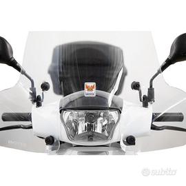 Parabrezza Isotta trasparente realizzato in plexiglass esclusivamente made in Italy. Questo materiale mantiene la sua trasparenza e lucentezza inalterata nel tempo.