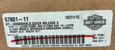 Parabrezza compatto Harley-Davidson a sgancio rapido, adatto ai modelli XL883L e XL1200C dal 2011 in poi e XL1200T dal 2014 al 2017. Dimensioni del parabrezza: altezza totale 22,8"; larghezza 19,5". La forma compatta preserva l'aspetto grezzo e muscoloso della moto, ma divide comunque il vento per ridurre la pressione dell'aria sul torace. Parabrezza trasparente da 18" con rinforzi lucidati. Si monta sui tubi della forcella tramite morsetti a leva pressofusi, quindi il parabrezza non richiede alcun tipo di bulloneria di fissaggio. Non sono necessari attrezzi. Il kit include tutto il necessario per l'installazione. Materiale: policarbonato con rivestimento indurente.