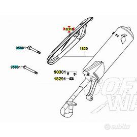 (R.24020) Vendo paracalore nuovo per Kymco Agility 50 e 125 - Agility RS 125 - Like 50 , originale Kymco con codice 00164081 o 18318LDF7E10 , con interassi tra le viti di 155 mm e 70 mm , per misure con applicazioni e spaccato vedere foto