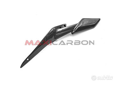 La finitura del carbonio è lucida (disponibile su richiesta anche con finitura opaca), e la trama utilizzata è la stessa di MV Agusta.
