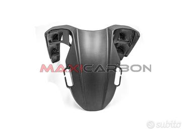 La finitura del carbonio è opaca (disponibile su richiesta anche con finitura lucida), e la trama utilizzata è la stessa di Ducati.