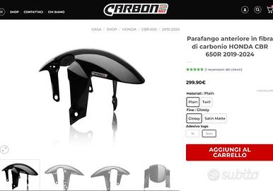 Parafango in vero carbonio per Honda CBR 650 R e CB 650 R