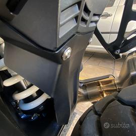 L’area coperta comprende l’ammortizzatore posteriore, il supporto, il forcellone e il collettore. Questo paraschizzi interno è studiato per deviare il flusso di acqua e sporco, mantenendo in buone condizioni componenti importanti e delicati della tua moto.