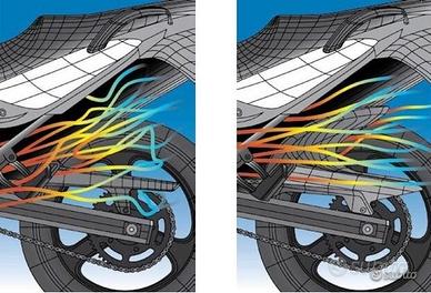 Prodotto studiato per salvaguardare e proteggere sia il conducente e passeggero da schizzi d'acqua e fango in condizioni di cattivo tempo proteggendo le parti meccaniche come batteria,ammortizzatori,sistema di scappamento e tutte le parti montate sul lato posteriore , l'acqua ristagnata può dare problemi a lungo termine e questo prodotto salvaguarda a tal proposito facendo una netta differenza sul lungo periodo.
