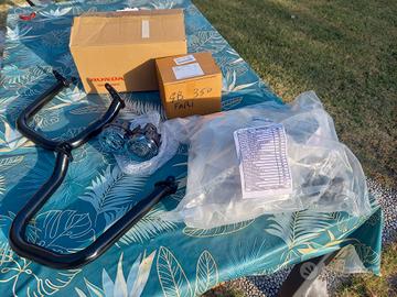 Vendo kit luci led fendinebbia supplementari e barre para motore per honda gb350. I fari sono nuovi,mai usati, tolti dalla scatola solo per fare la foto, il cablaggio e tutto il kit di accessori di montaggio sono ancora nella busta che non è mai stata aperta. Ho acquistato la mia GB 350 s a marzo e questi accessori facevano parte di un pacchetto in pronta consegna con la moto, ma a me non piacevano e quindi non li ho fatti montare al concessionario. Erano montate solo le protezioni per il telaio ed il motore che però ho subito fatto smontare. Per correttezza segnalo che per montare le barre di protezione, va utilizzato un bullone più lungo che però non posso fornire perché è rimasto montato sulla mia moto. Eventualmente posso scambiarlo con il bullone originale della moto di chi acquistera' questo prodotto.