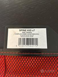Spine kid per bambini, con bretelle e allaccio in vita con velcro. La protezione sulla schiena è rigida. Usato poco. Utilizzabile sia in bici, moto che come protezione della schiena mentre si scia. E’ composto da 7 inserti, lunghezza circa 35 cm.