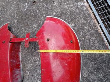 Vendo Vendo due paraschizzi per motorino d'epoca Malanca. 4marcie cambio a pedale. Sono di colore rosso e presentano un adesivo. Mostrano segni di usura dovuti al tempo.
