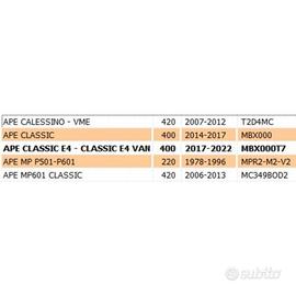 (R.14402) Vendo paraspruzzi del parafango posteriore nuovo per Piaggio Ape MP P501 e P601 220 cc dal 1978 - MP 601 Classic 420 cc dal 2006 - Calessino VMW 420 cc dal 2007 - Classic 400 cc dal 2014 con codice Piaggio 142424 - 1424245 - 152081 di colore nero , il prezzo si intende per singolo pezzo , per misure e applicazioni vedere foto , 3 pezzi disponibili