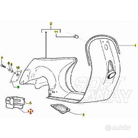 (R.23714) Vendo protezione paraurti posteriore nuovo per Piaggio Vespa PX 125 e 150 dal 1998 originale Piaggio con codice 5769690090 , per applicazioni e spaccato vedere foto