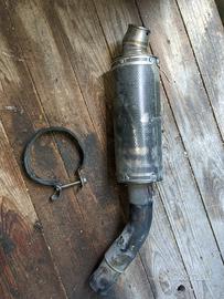 terminale di scarico (marmitta, silenziatore, finale di scarico o come dir si voglia) artigianale senza db killer con supporto da fissare al poggiapiedi posteriore, inizia con un tubo facile da fissare al collettore (in realtà può andare bene per qualsiasi moto, è universale)