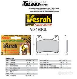Vendo pastiglie racing nuove per freno anteriori marca Vesrah VD 170 RJL per Cbr 600, Cbr 1000, Cb 1000 paragonabili come mordente alle DID ZCOO