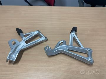 Coppia di pedalini posteriori originali BMW, con aggancio necessario per il montaggio delle valigie laterali Vario. Montano su F750/850 GS.