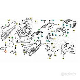 (R.20546) Vendo pedana sinistra nuova poggia piedi posteriore del passeggero per Kymco CX 50 cc dal 1993 con codice Kymco 00154531 , per applicazioni e spaccato vedere foto
