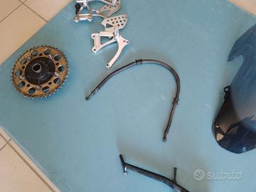 pedana GSX R 1000 k4 € 50 semi manubri € 40 plexiglass € 50 mai usato cavalletto € 40 corona con porta corona € 50 tubo freno posteriore € 10 tutto in blocco € 200 spedizione a parte