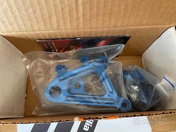 Vendo un set di pedane regolabili per tutte le RSV 1000 1998-2003 e le Tuono 1000 2002-2005. Il set è NUOVO, originale Aprilia Racing AP8140497, in Ergal Blu 7075, con le singole parti ancora nelle loro bustine sigillate e nella scatola originale.