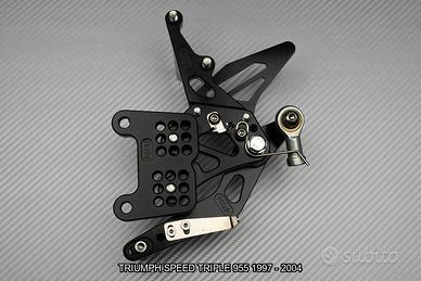 AVDB Moto propone 2 modelli di pedane arretrare, il modello AVDB e il modello Racing, queste pedane sono specifiche per le seguenti moto TRIUMPH: