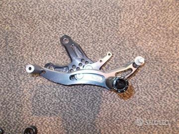 Pedane racing con tante regolazioni per uso pista compatibili con BMW S1000R dal 2012 al 2016. Le pedane come si vede in foto presentano dei difetti estetici ma sono integre e perfettamente funzionanti. Disponibili anche cover serbatoio nera e parafango posteriore Spese di spedizione da concordare al momento