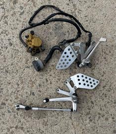 Coppia di pedane poggiapiedi complete di: pompa freno, pinza freno e leva cambio. per Honda CBR 954rr in stato ottimo, come nuove. Complete di tutto.