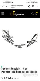 Vendo pedane Lightech per Honda CBR 1000 2017/2018 . modello top di gamma con appoggia piede snodati . Ci sono dei segni di usare/ sfregamento come da foto. prezzo leggermente trattabile, ma non offerte assurde. per qualsiasi info, scrivetemi...