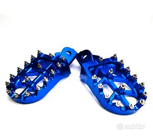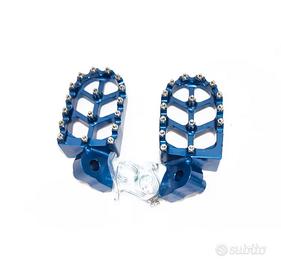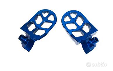 Vendo coppia di pedane poggiapiedi in alluminio CNC anodizzato di colori blu,rosso,nero,arancione e grigio per moto da cross/enduro. Le pedane sono nuove, mai usate.