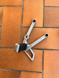 Vendo coppia di pedane originali Cagiva con logo Elefantino, complete di rivestimento in gomma antivibrazione (originale serie Freccia, non Mito). Il set è composto da: 1 Pedana Anteriore (Pilota) 1 Pedana Posteriore (Passeggero) Una delle due pedane è spezzata dietro la gomma come da foto n. 4. Le due pedane presentano angolazioni e aperture differenti tra loro (una più aperta, l'altra più chiusa), configurazione tipica di alcuni modelli della serie C10/C12. IMPORTANTE: Date le numerose varianti prodotte da Cagiva osservate bene le foto e confrontate l'angolazione dei bracci e l'interasse dei fori con i supporti attualmente montati sulla vostra moto. Non mi assumo responsabilità per incompatibilità su versioni specifiche non sapendo con precisione di che modello appartengono le pedane che ho. Per qualsiais informazione chiedete. Disponibile per il ritiro a mano su Frosinone e Roma nord. Ricambio non adatto per: Gilera KZ 125 Gilera KK 125 Cagiva Mito 125 Gilera Sp01 Gilera Sp02 Aprilia sintesi Aprilia af1 Aprilia project 108