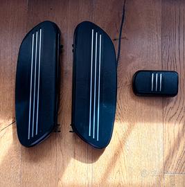 - Per ulteriori foto piu dettagliate o info scrivi in chat - Acquistabili anche singolarmente In ordine: 1. Pedane serie Banana posteriori, caratterizzate da una superficie in gomma a forte presa che è inchiodata alla pedana per un look fantastico. Borchie metalliche cromate disposte lungo il perimetro e struttura metallica in nero lucido. Comprensive di base ed attacchi. 400€ 2. Pedane anteriori originali HD, comprensive del pedale del freno. 200€ 3. Pedane serie Mezzaluna originali HD anteriori e posteriori, comprensive del pedale del freno. La parte superiore è dotata di un inserto in gomma nera testurizzata con un motivo a rete antiscivolo, progettato per offrire una presa sicura e ridurre le vibrazioni durante la guida. La base metallica e i supporti visibili sono in nero lucido. Scritta Harley Davidson a rilievo. 500€ Condizioni come da foto, zoomare per analizzare i dettagli.