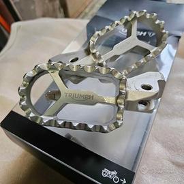 Coppia di pedane pilota in alluminio forgiato e lavorato CNC, progettate per offrire una presa eccezionale ed esaltare l’aspetto robusto della tua Triumph. Finitura anodizzata grigia canna di fucile.