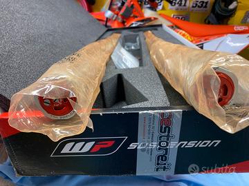 Comprate nuove al centro WP di Cortona. Compreso manuale d'uso e manutenzione e attrezzi per la regolazione. Migliore risposta e feedback del terreno in ogni situazione di guida Ridotto rischio di cavitazione grazie al sistema di sovrapressione – nessuna perdita di smorzamento Estrema lunga durata grazie all'utilizzo di materiali di altissima qualità Tutte le regolazioni possono essere effettuate all'esterno Tecnologia a cartuccia chiusa Completa regolabilità con attrezzo standard Realizzato a mano con massima cura Precarico della molla regolabile con Molle per pilota da kg 75/82